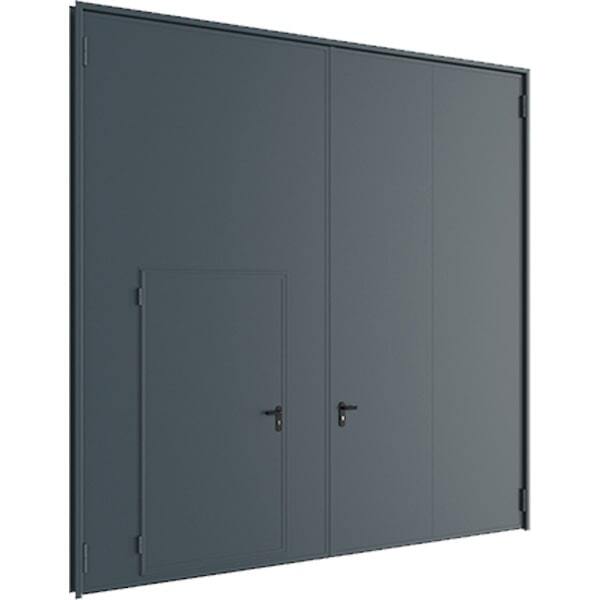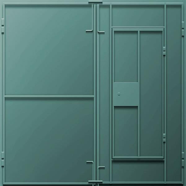 Рама из согнутого стального листа толщиной 1.5 мм, полотно коробчатого типа из стального листа толщиной 1.5 мм. Заполнение полотна + короб минплита, уплотнитель Е=D покраска Поршковое напыление RAL