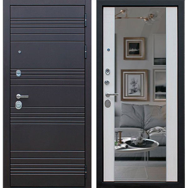 Входная дверь с зеркалом. порошок + панель МДФ